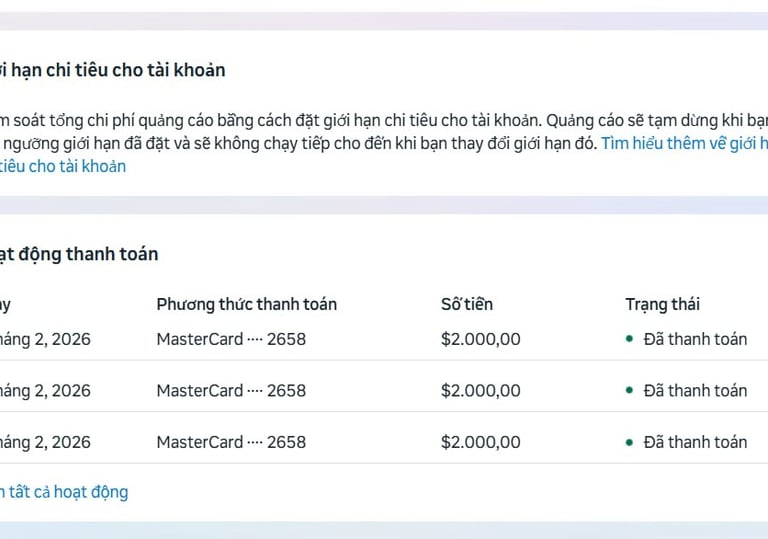 EN: To ensure speed and anonymous security for all our partner clients' high budget businesses, we prioritize USDT (TRC20/ERC20). This allows us to deploy set camp FB ads immediately 24/7 and the ability to support customers extends unlimitedly globally. Customers deposit $200 and we set up camp Facebook ads within 2 hours. Immediately after that, the customer paid an additional $500 for us to turn on the FB ads camp to spend money. Customers then pay according to daily work progress.