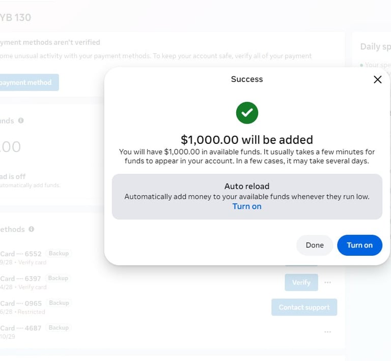 Unlimited spending account - Scalable with a budget of $10k+/day with a Funding Ratio of only 68% of the amount spent on Facebook ads
